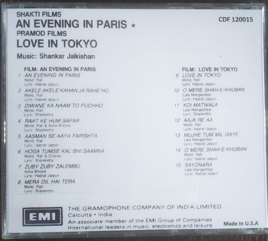 | 1. An Evening In Paris | : | Mohd. Rafi |