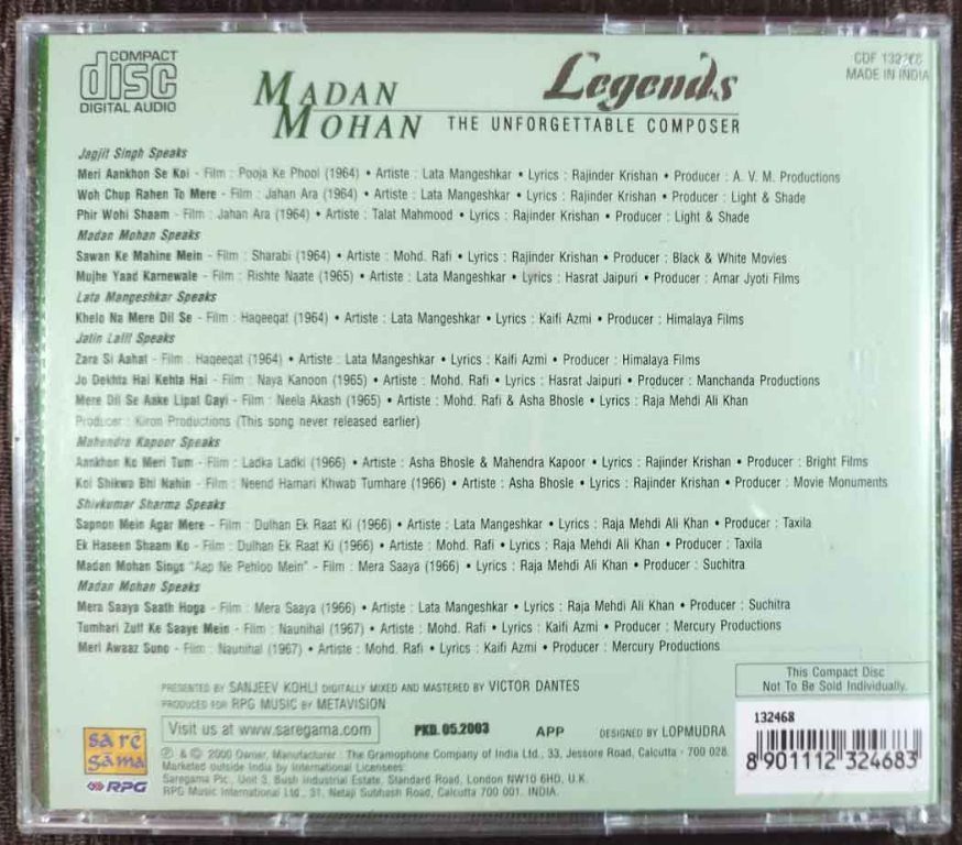 | Title | : | Madan Mohan - Legends - The Unforgettable Composer |
