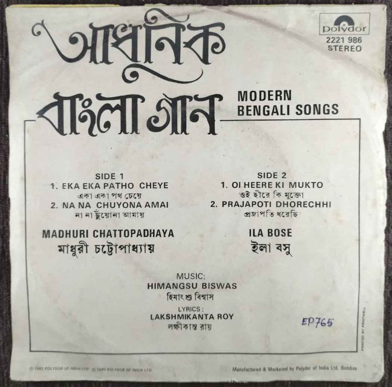 | Title | : | Madhuri Chattopadhyay & Ila Bose - Modern Bengali Songs |