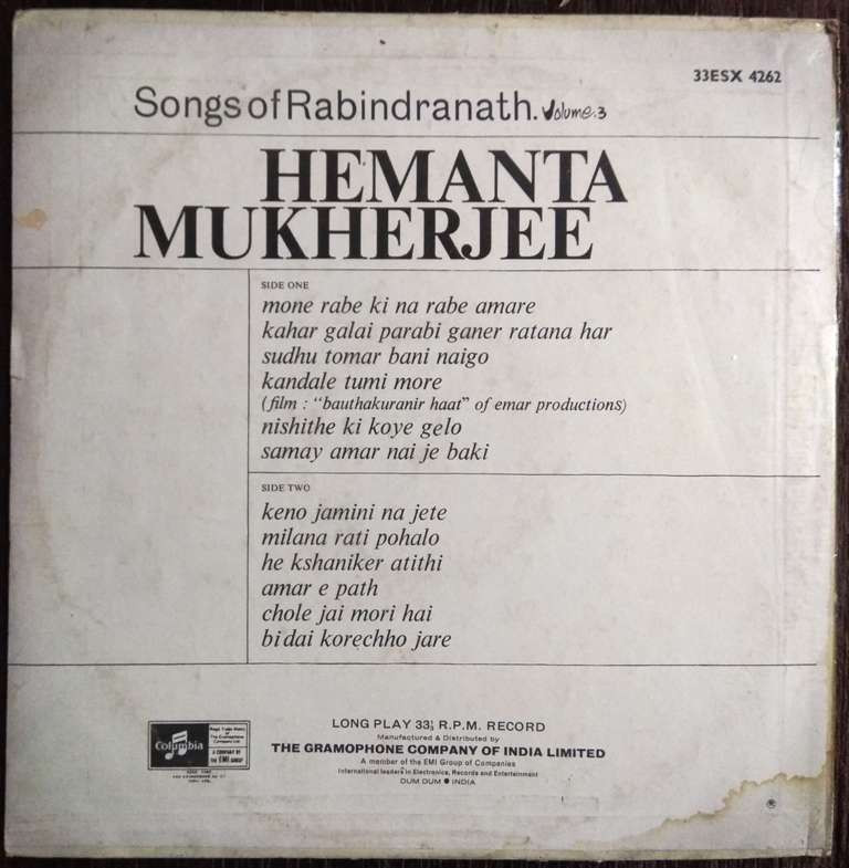 | Title | : | Hemanta Mukherjee – Songs Of Rabindranath Vol. 3 |