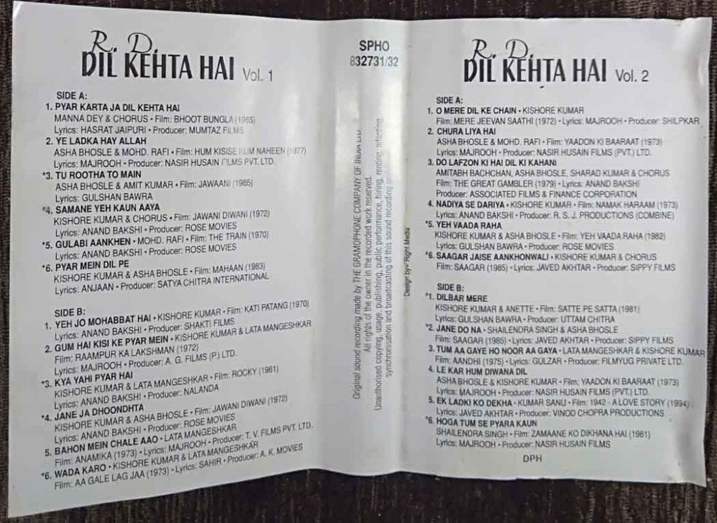 | Title | : | R.D. Burman - Dil Kehta Hai - Hits Of R.D. Burman Vol 1 & 2 |