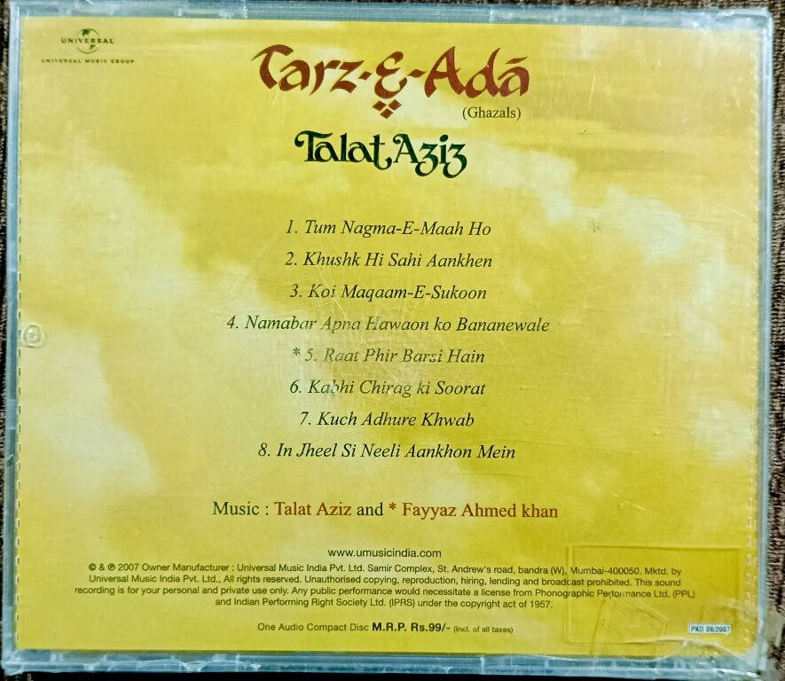 | Title | : | Talat Aziz - Tarz-E-Ada Talat Aziz Ghazal |