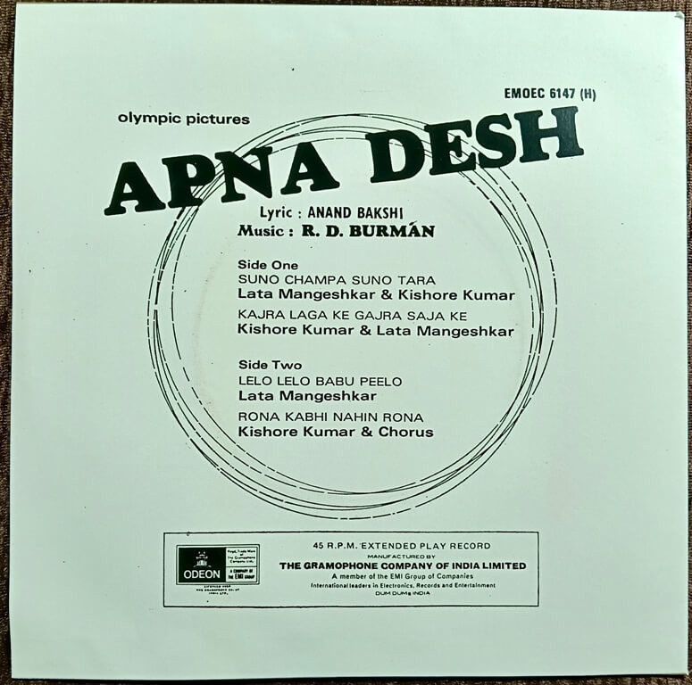 | A1. Suno Champa Suno Tara | : | Lata Mangeshkar & Kishore Kumar |