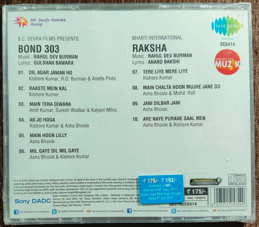 Bond 303 (1984) Rahul Dev Burman / Raksha (1981) Rahul Dev Burman Pre-Owned Saregama – RP-Sanjiv Goenka Group Audio CD