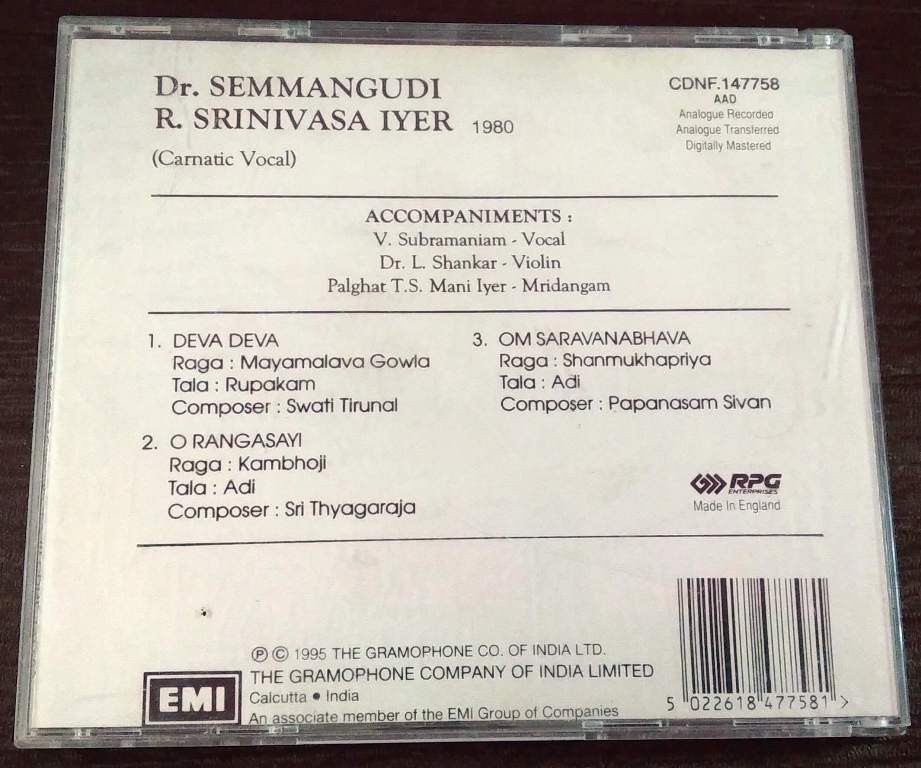 | Title | : | Dr. Semmangudi R. Srinivasa Iyer - Carnatic Vocal |