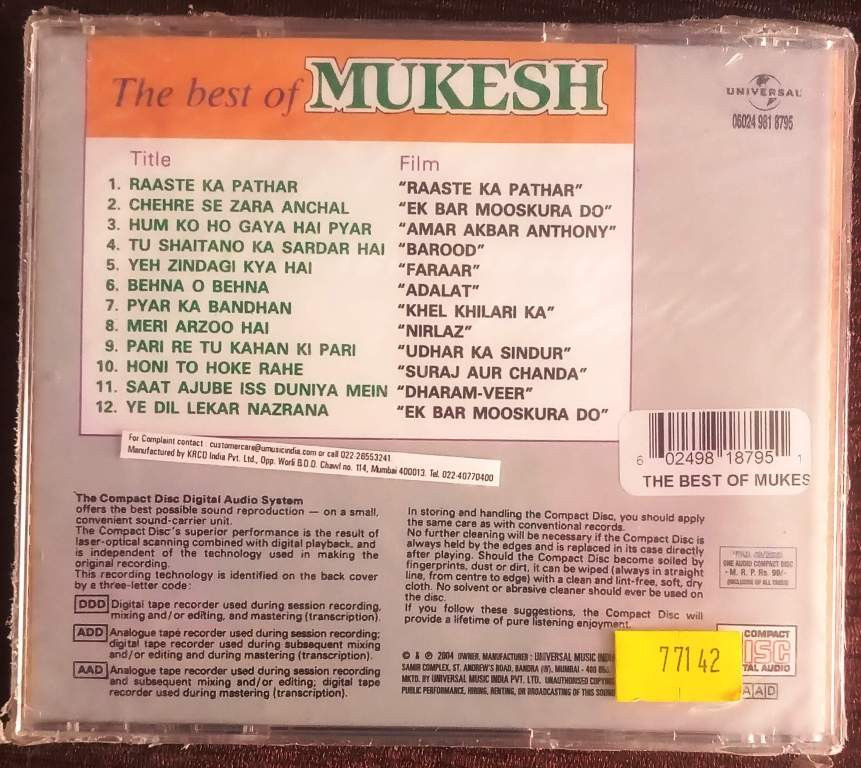 | Title | : | The Best Of Mukesh |