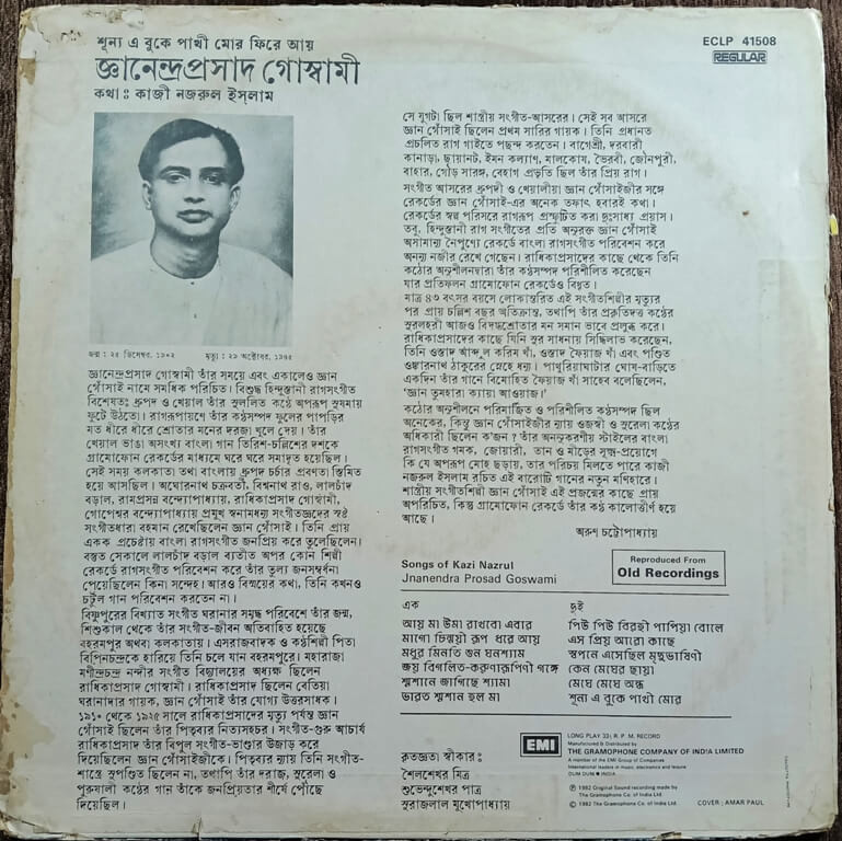 | Title | : | Jananendra Prasad Goswami - Sunno Ei Buke Pakhi Mor Phire - Songs Of Kazi Nazrul |