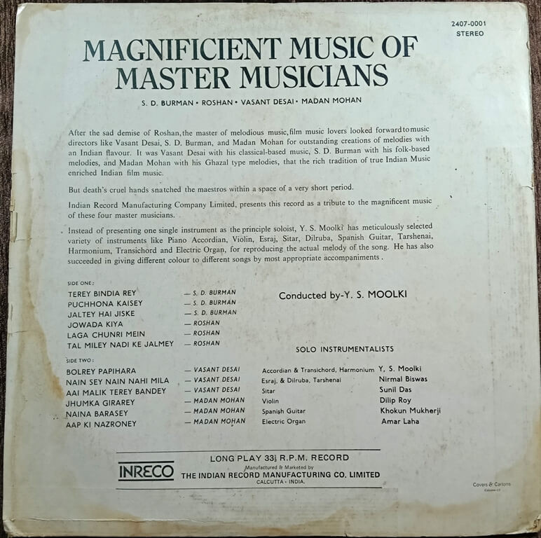 | Title | : | Y. S. Moolki – Magnificient Music Of Master Musicians |