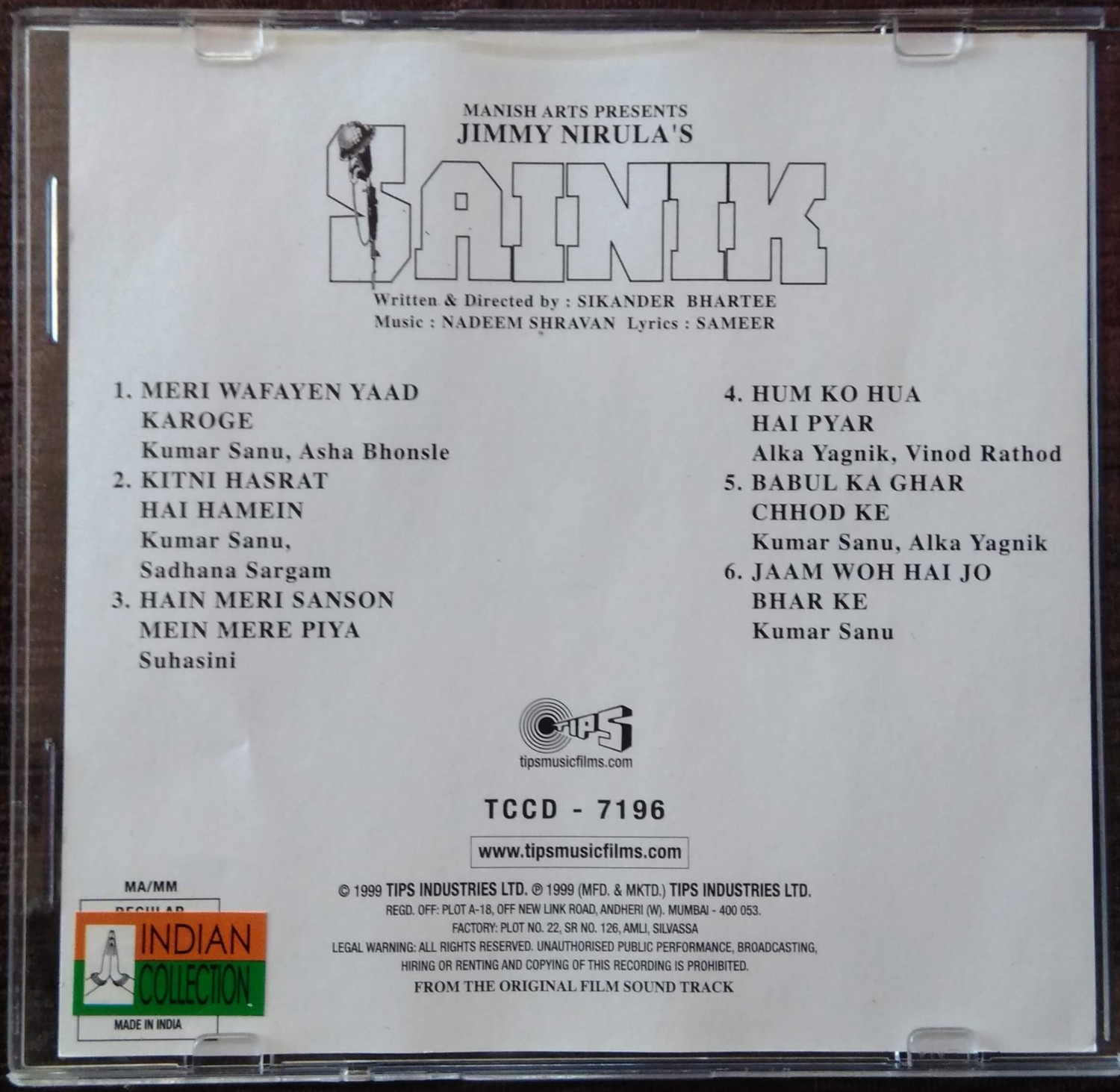 Sainik (1999) Nadeem-Shravan Pre-Owned Tips Audio CD