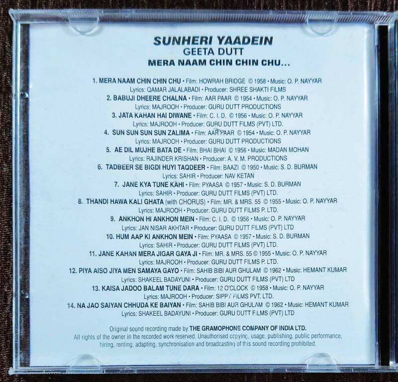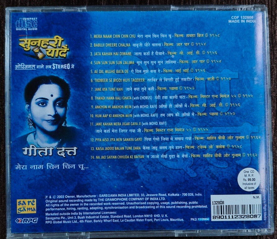 | Title | : | Geeta Dutt - Sunheri Yaadein - Mera Naam Chin Chin Chu |