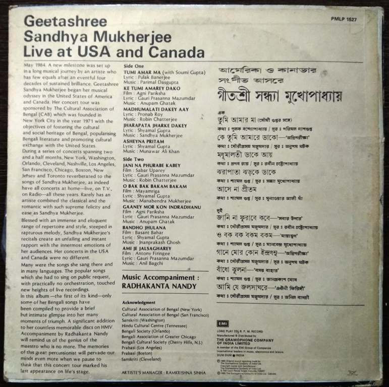 | Title | : | Geetashree Sandhya Mukherjee - Live At USA And Canada |