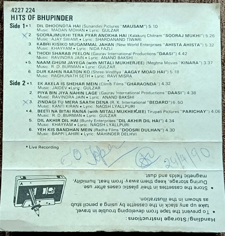 | Title | : | Bhupinder Singh – Hits Of Bhupinder (1988) |