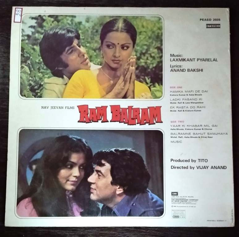 Ram Balram (1980) Laxmikant-Pyarelal Pre-Owned Vinyl, 12" LP Record