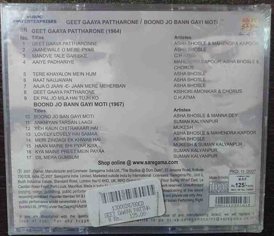 | Title | : | Geet Gaaya Pattharo Ne - Boond Jo Ban Gayi Moti |