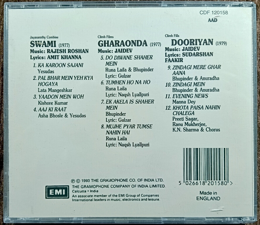| Music Direction Of Gharonda | : | Jaidev |
