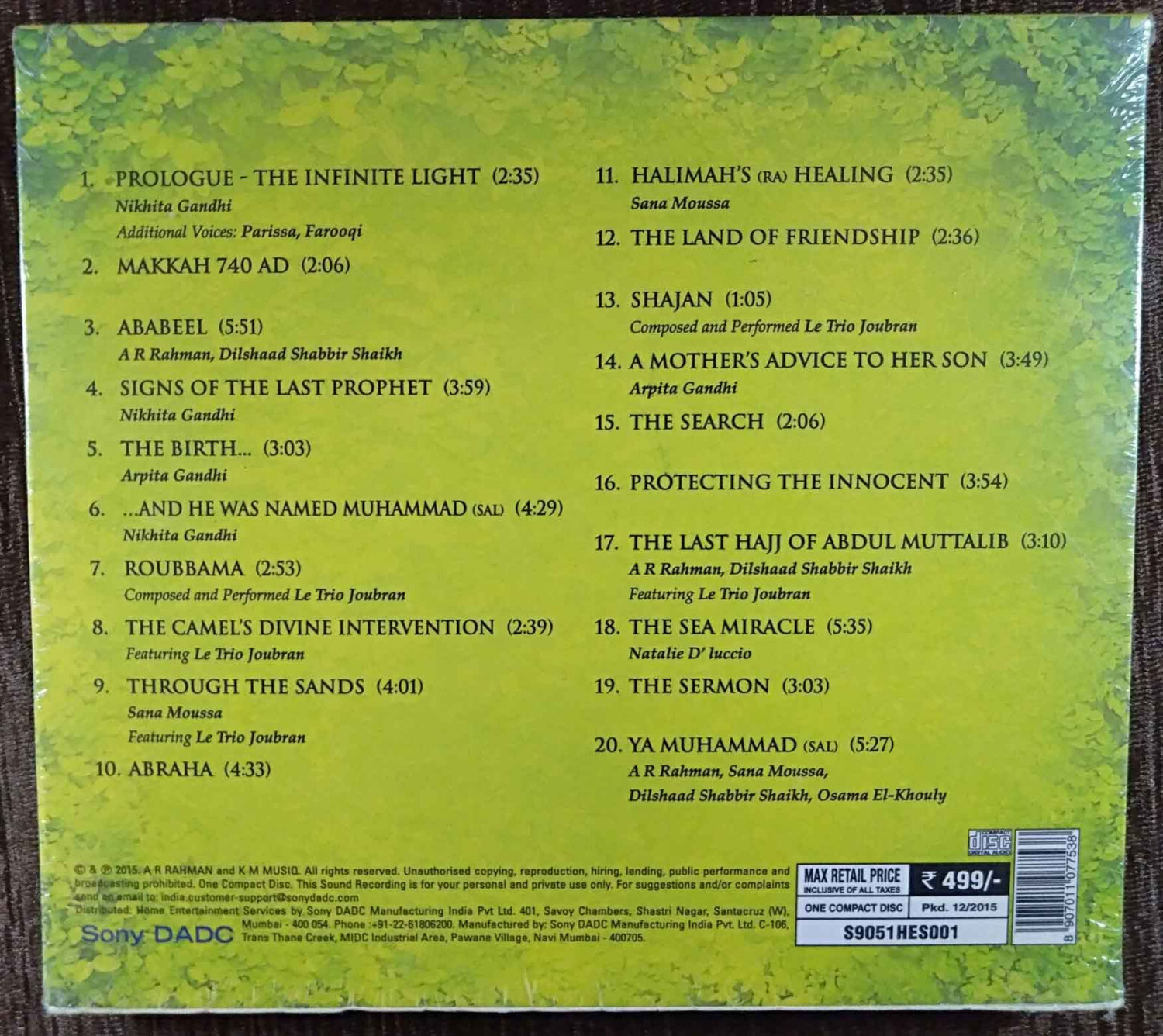 | 20. Ya Muhammad | : | A.R.Rahman, Sana Moussa, Dilshaad Shabbir Shaikh & Osama Ei Khouly |