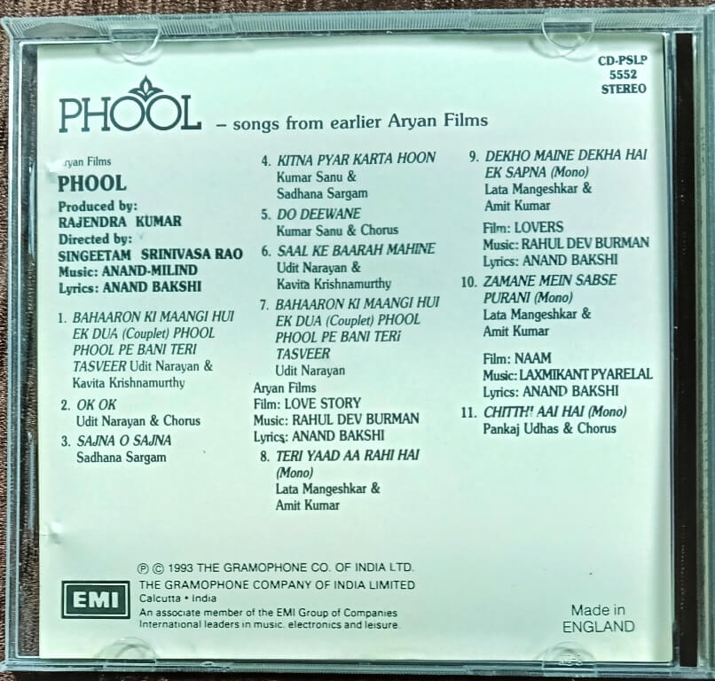 | 1. Phool Phool Pe Bani Teri Tasveer | : | Udit Narayan & Kavita Krishnamurthy |