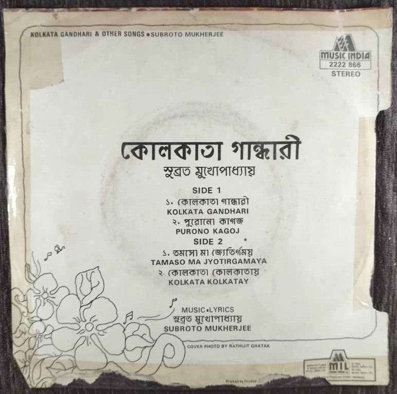 | Title | : | Subroto Mukherjee - Kolkata Gandhari & Other Songs |