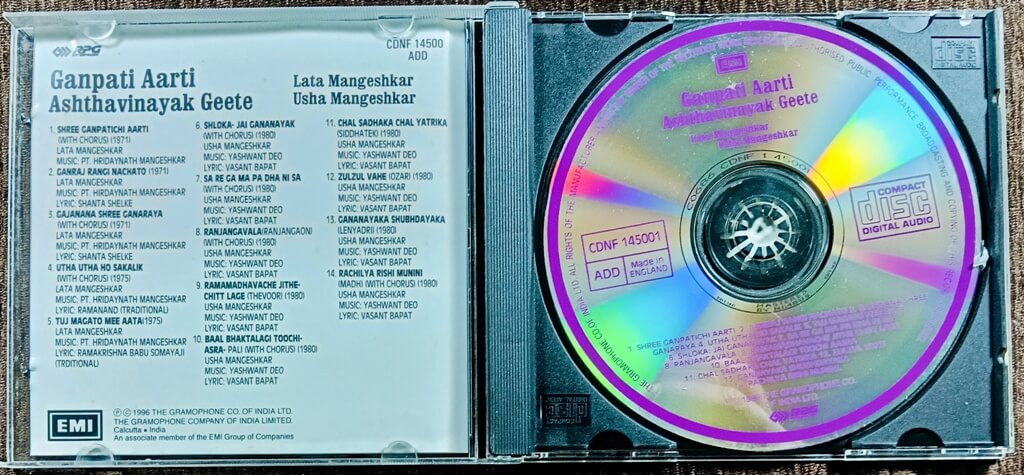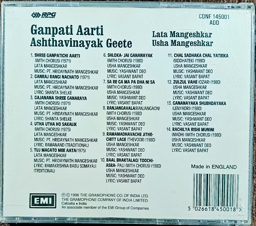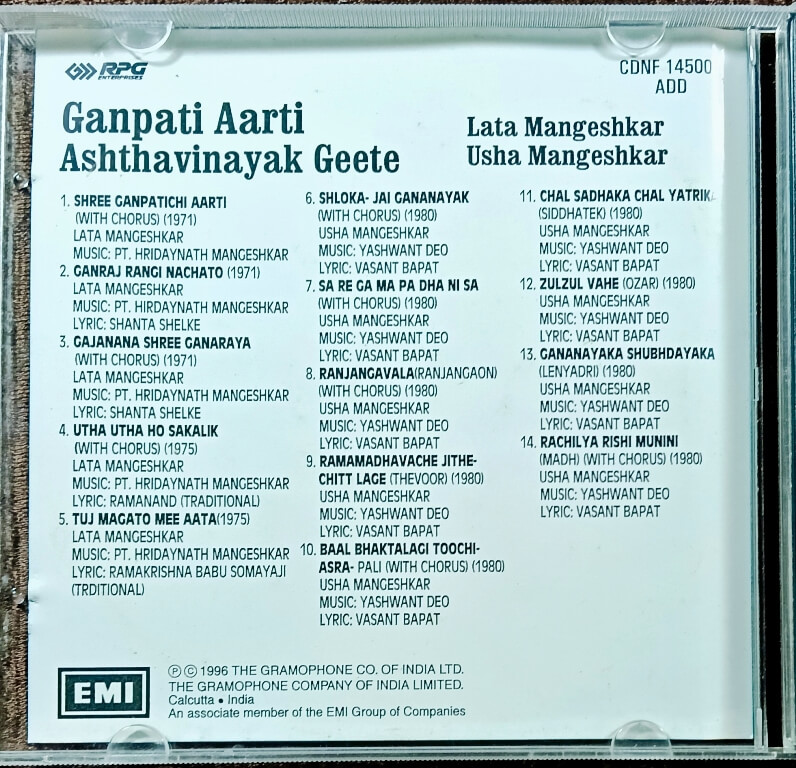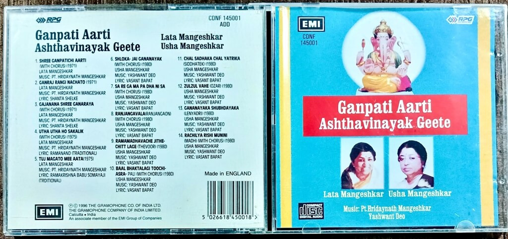| Title | : | Lata Mangeshkar & Usha Mangeshkar - Ganpati Aarti Ashthavinayak Geete |