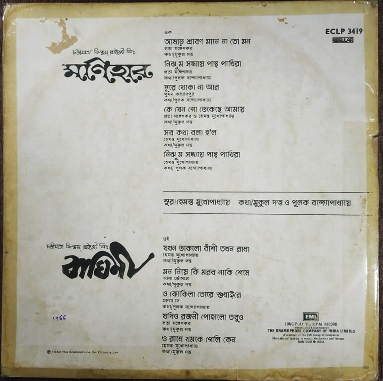 | Lyrics Of Monihar | : | Mukul Datta & Pulak Bandyopadhyay |
