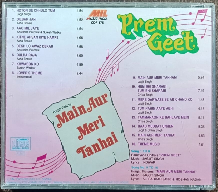 | Music Direction Of Prem Geet | : | Jagjit Singh |