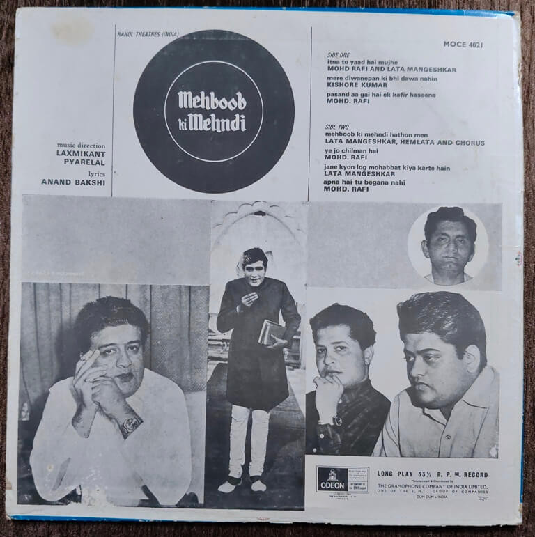 | B1. Mehboob Ki Mehndi Hathon Men | : | Lata Mangeshkar, Hemlata & Chorus |