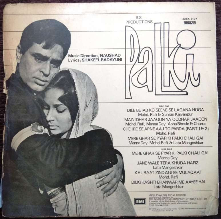 | 4. Mere Gharse Pyar Ki Palki Chali Gai | : | Mohd. Rafi & Manna Dey & Lata Mangeshkar |