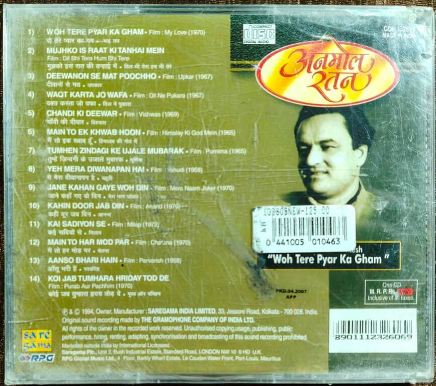 | Title | : | Mukesh – Wo Tere Pyar Ka Gham - Anmol Ratan: Mukesh Vol-1 |
