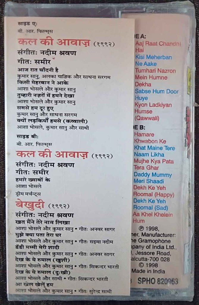 | Music Direction Of Kal Ki Awaz | : | Nadeem-Shravan |