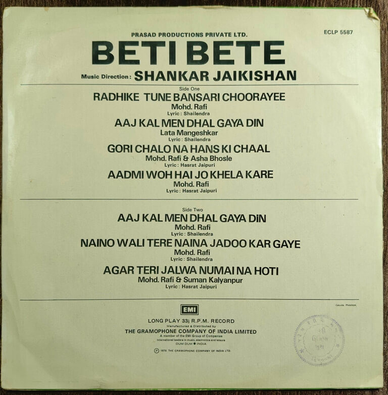 | A3. Gori Chalo Na Hans Ki Chaal | : | Mohd. Rafi & Asha Bhosle |