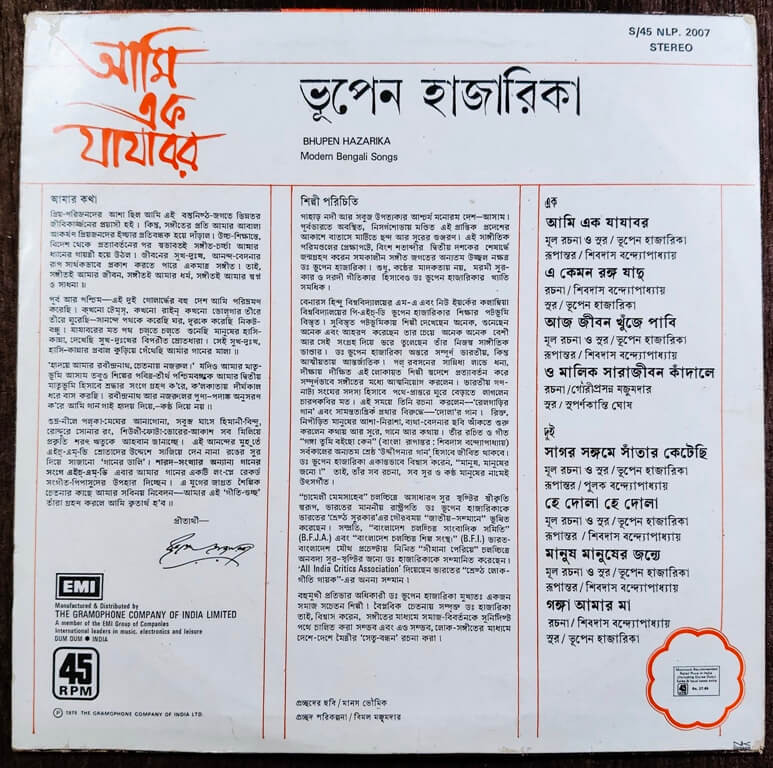 | Title | : | Bhupen Hazarika - Aami Ek Jajabar - Bengali Modern Songs |