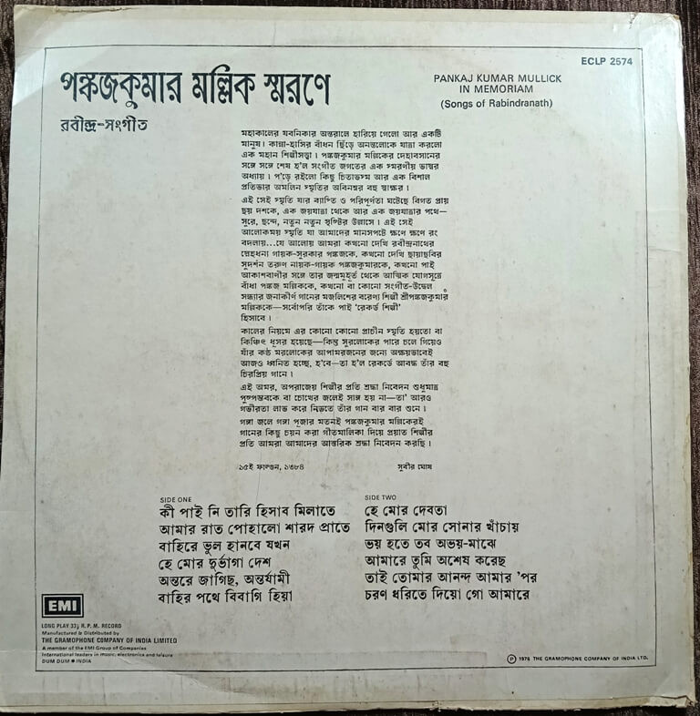 | Title | : | Pankaj Kumar Mullick - In Memoriam (Songs Of Rabindranath) |