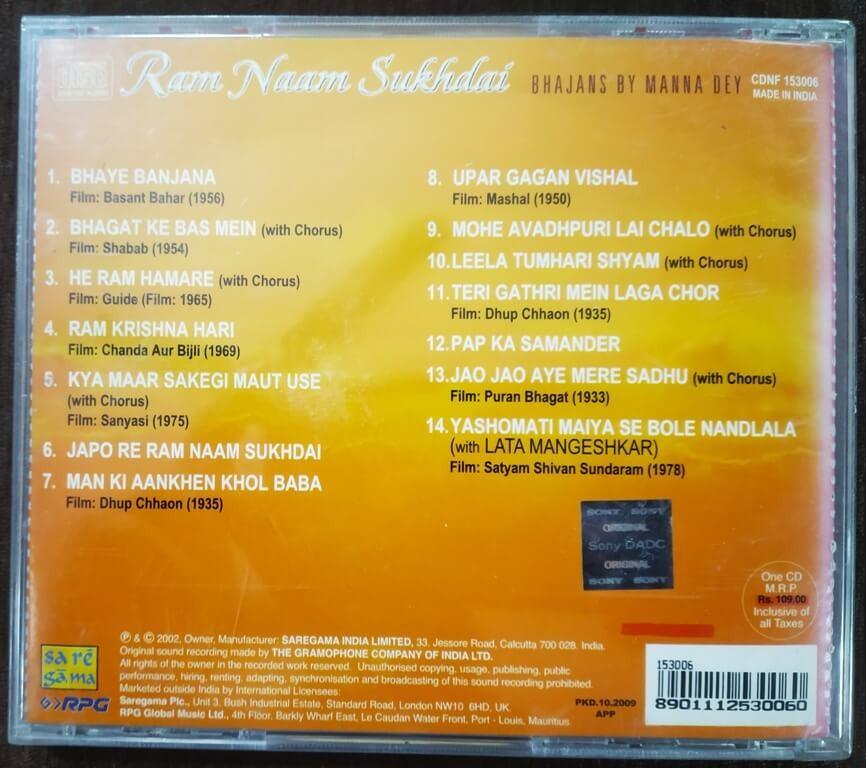 | Title | : | Manna Dey - Ram Naam Sukhdai |