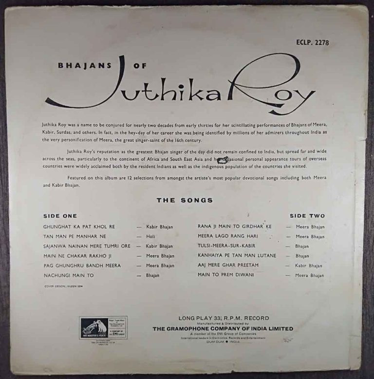 | 1. Rana Ji Main To Girdhar Ke (Meera Bhajan) | : | Juthika Roy |