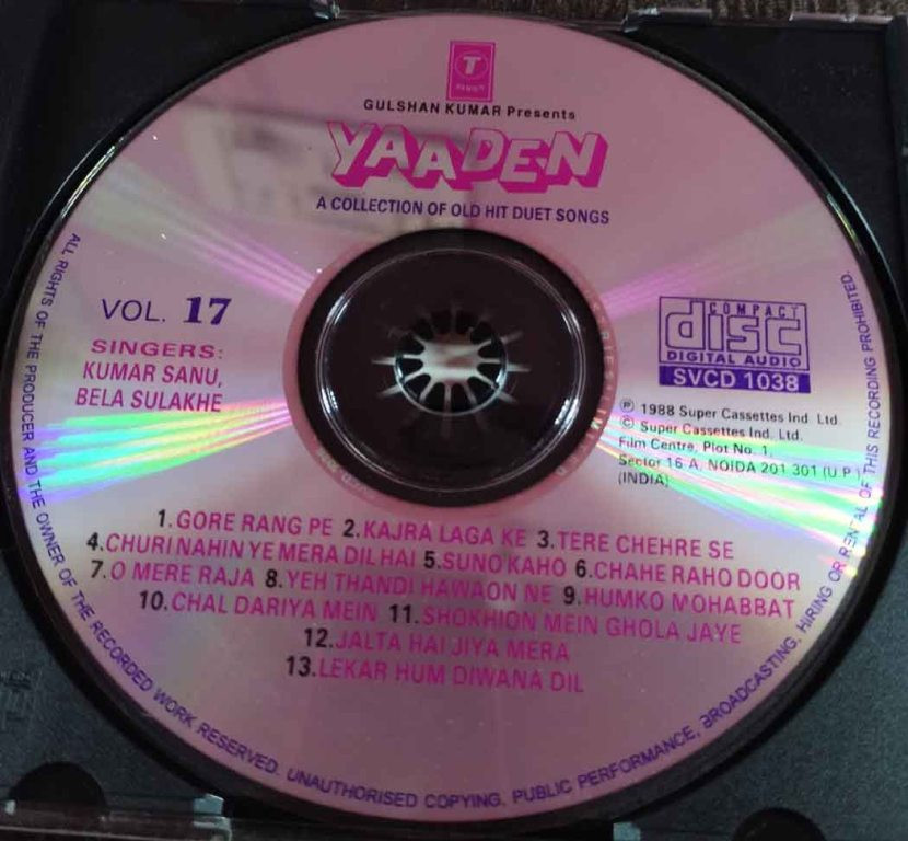 | Title | : | Kumar Sanu & Bela Sulakhe - Yaaden - A Collection Of Old Hit Duet Songs Vol 17 |