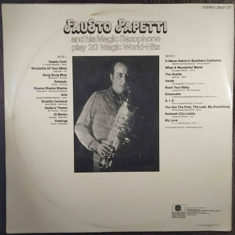 | Title | : | Fausto Papetti – Fausto Papetti And His Magic Saxophone Play 20 Magic World-Hits |