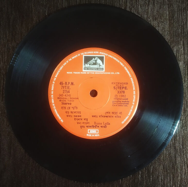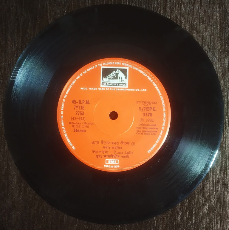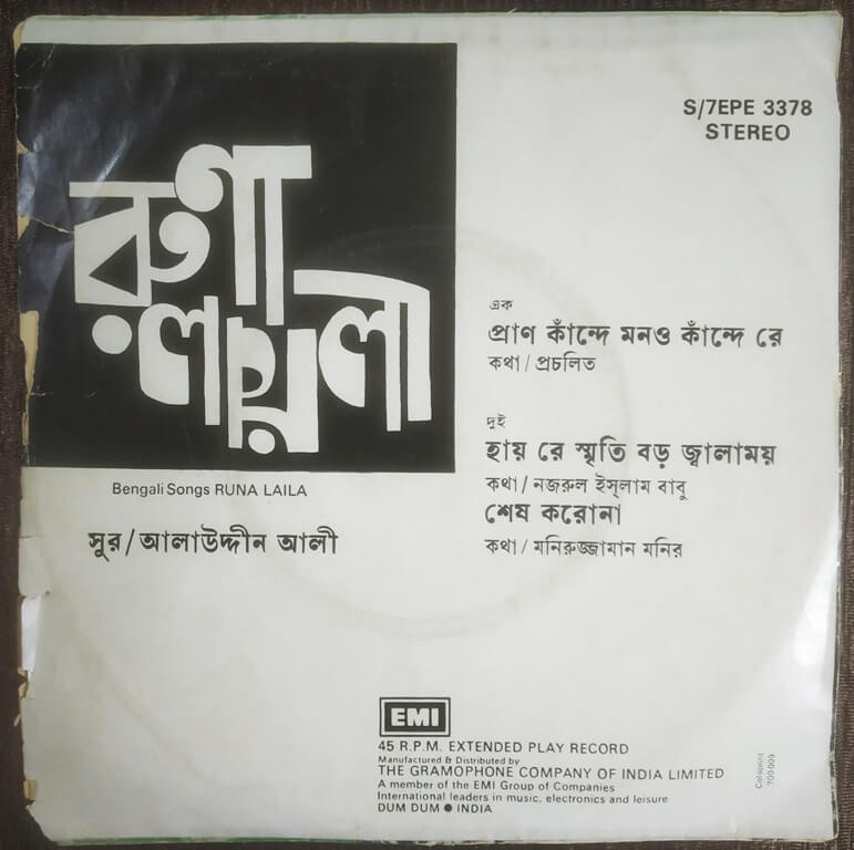 Runa Laila – Bengali Songs (1981) Allauddin Ali Pre-Owned Vinyl, 7" EP Record