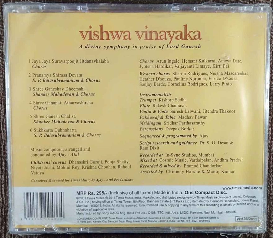 | Title | : | Ajay - Atul Featuring S. P. Balasubramaniam & Shanker Mahadevan – Vishwa Vinayaka (A Divine Symphony In Praise Of Lord Ganesh) |
