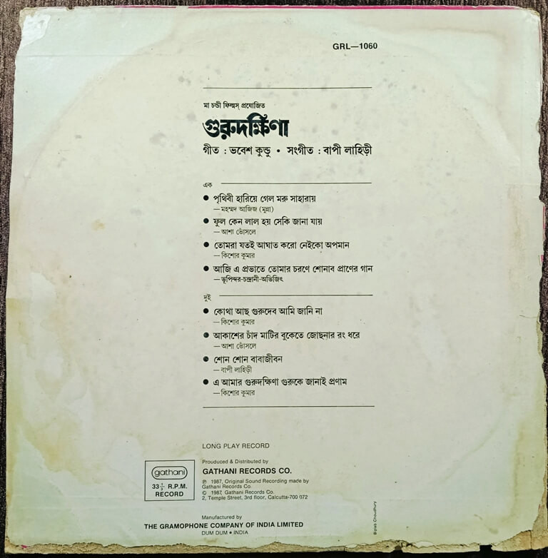| 4. E Amar Gurudakshina Guru Ke Janai Pronam | : | Kishore Kumar |
