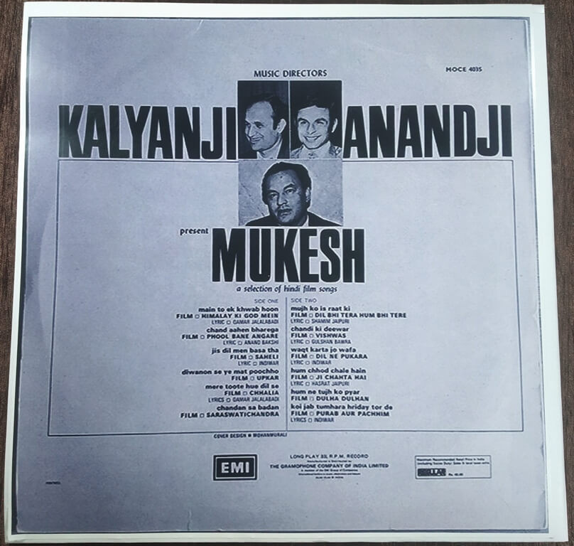 | Title | : | Kalyanji-Anandji Present Mukesh – A Selection Of Hindi Film Songs |