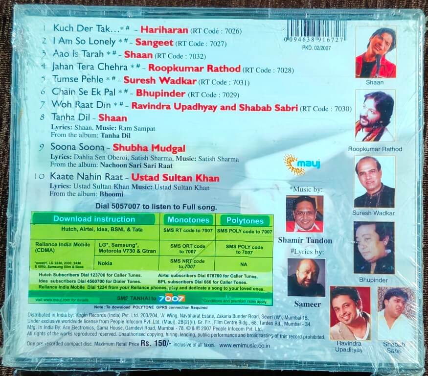 | 7. Woh Raat Din | : | Ravindra Upadhyay And Shabab Sabri |
