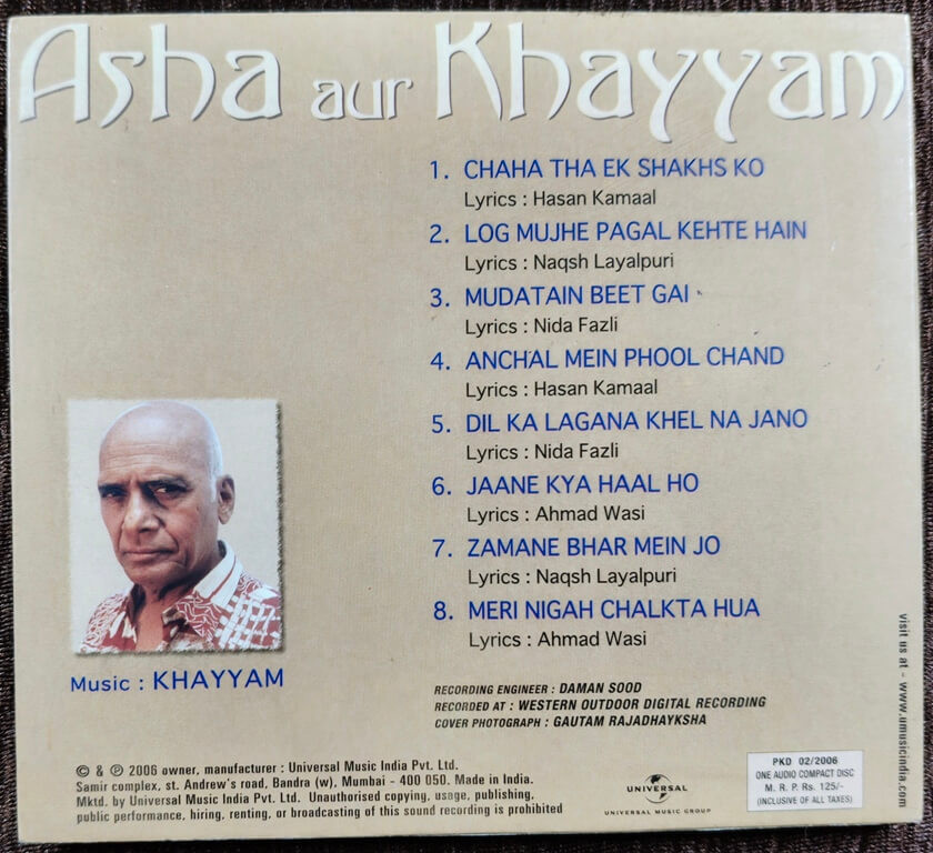 | Title | : | Asha Aur Khayyam - Eight Memorable Tracks |