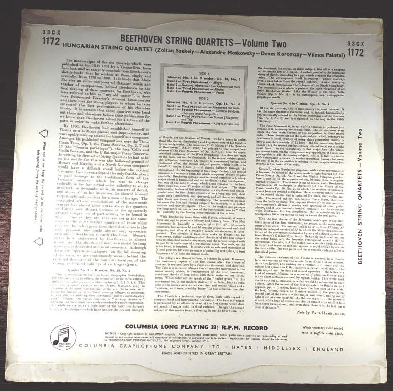 | Title | : | Beethoven, Hungarian String Quartet – String Quartets Volume Two • No. 3 In D Major, Op. 18, No. 3 / No. 4 In C Minor, Op. 18, No. 4 |