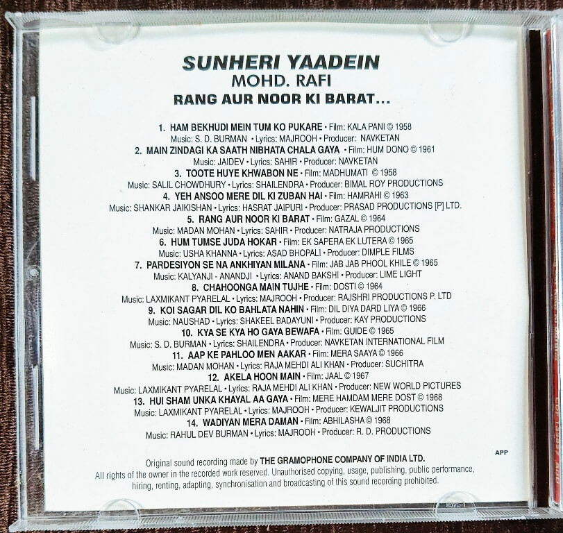 | Title | : | Mohd. Rafi - Sunheri Yaadein - Rang Aur Noor Ki Barat |