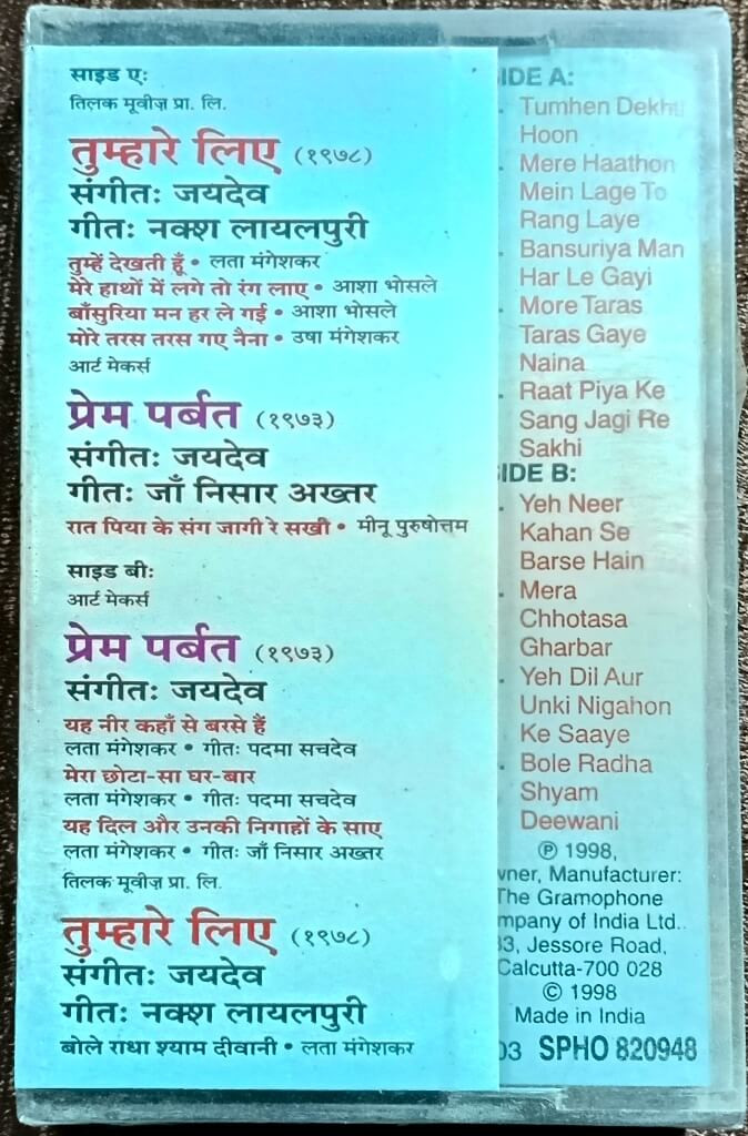 | Music Direction of Tumhare Liye | : | Jaidev |