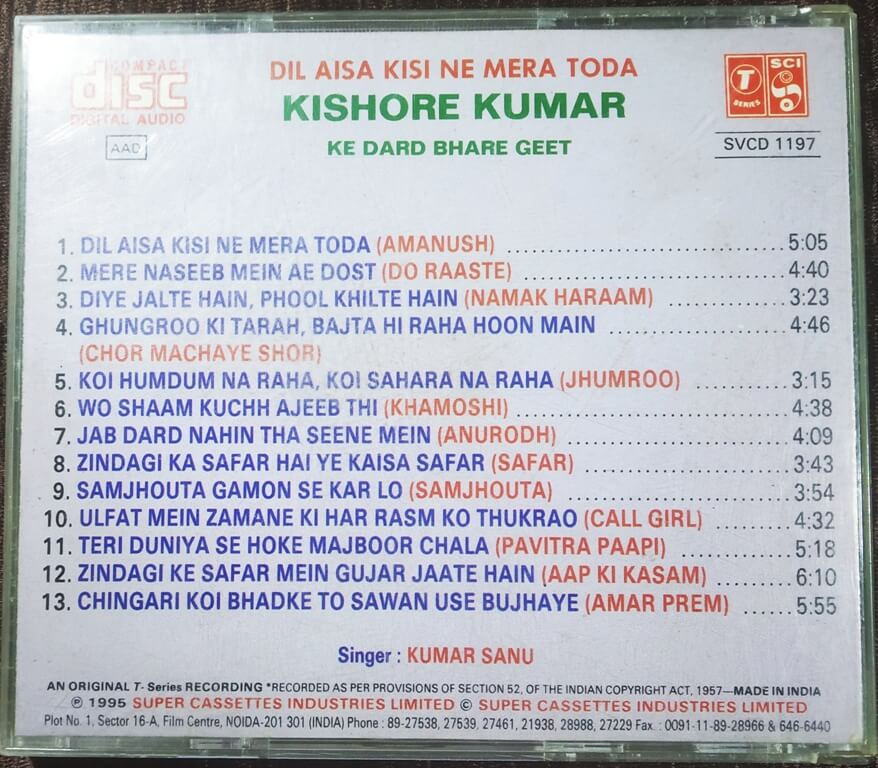 | Title | : | KISHOR KUMAR KE DARD BHARE GEET-DIL AISA KISI NE |