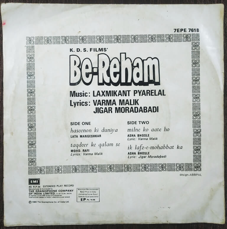 | Lyrics | : | Varma Malik, Jigar Moradabadi |