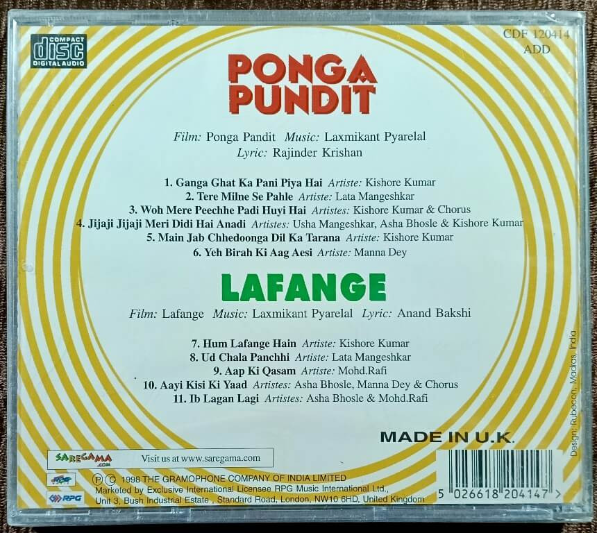 | Music Direction Of Ponga Pandit | Laxmikant-Pyarelal | |