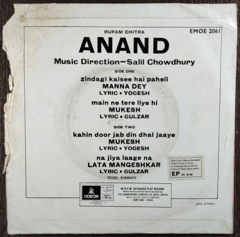 | Lyrics | : | Yogesh & Gulzar |