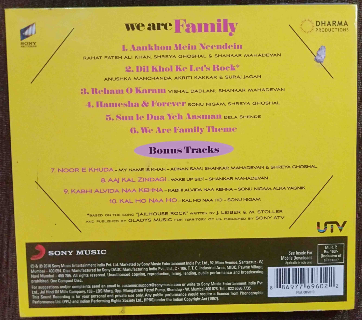 | 9. Kabhi Alvida Naa Kehna (Kabhi Alvida Naa Kehna) | : | Sonu Nigam & Alka Yagnik |